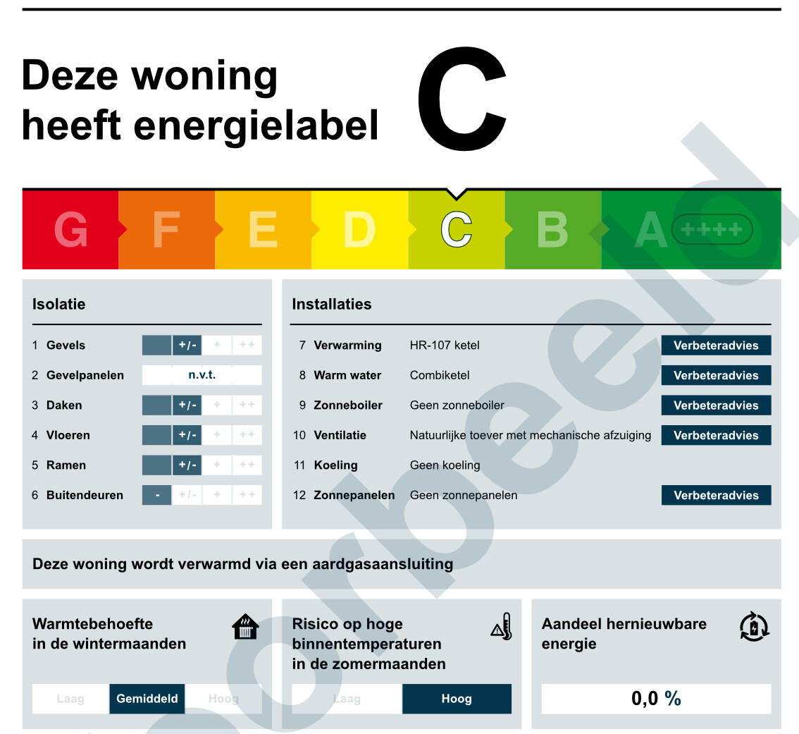 Bij verkoop of verhuur is een energielabel verplicht. Het geeft potentiƫle kopers of huurders direct inzicht in de energiezuinigheid van de woning en de te verwachten kosten.